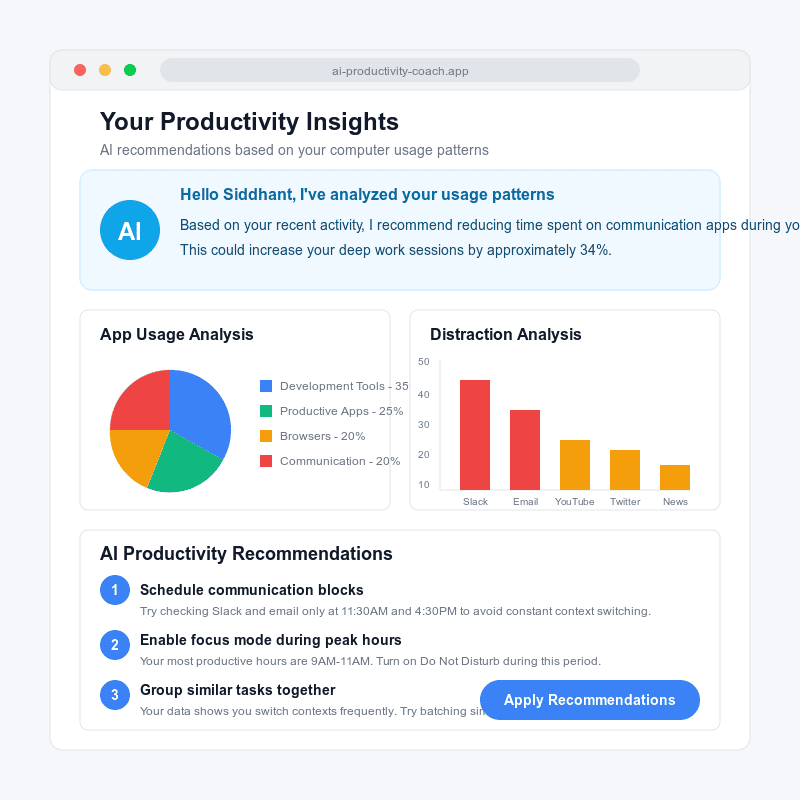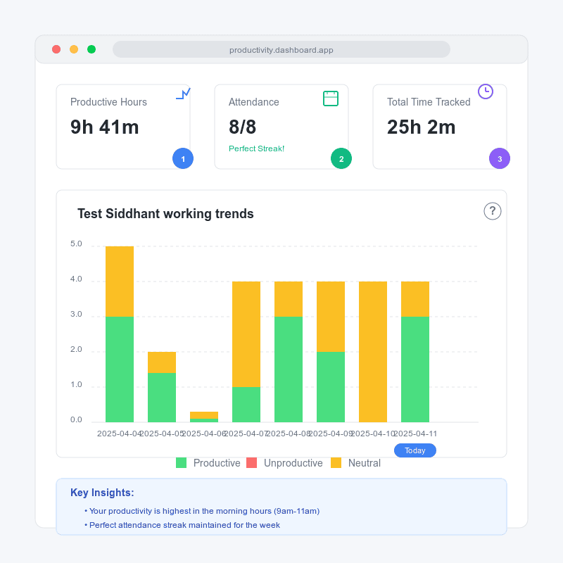 Backlsh is a game-changer for remote teams. Its precise time tracking ensures we stay on task, while AI insights provide personalized productivity tips tailored to each team member. With Backlsh, our distributed team remains efficient and focused, regardless of our location. It's a must-have tool for seamless remote collaboration and productivity optimization.